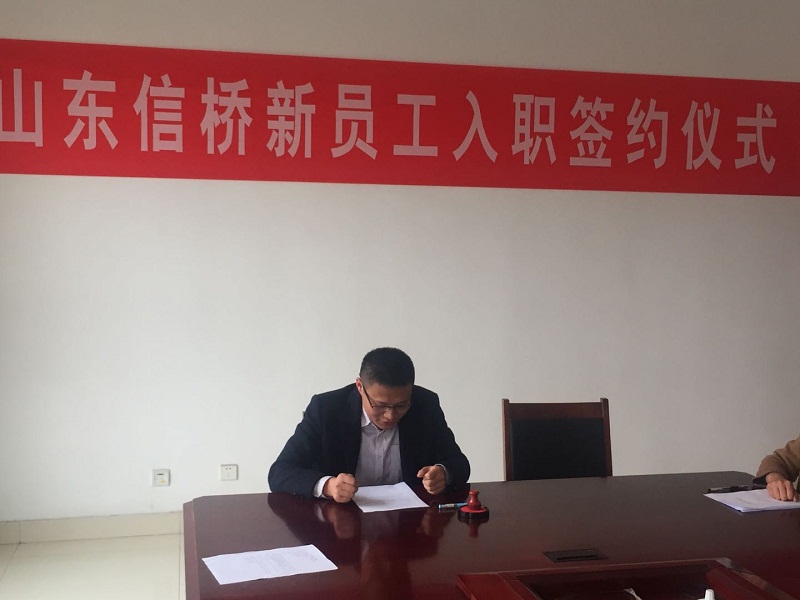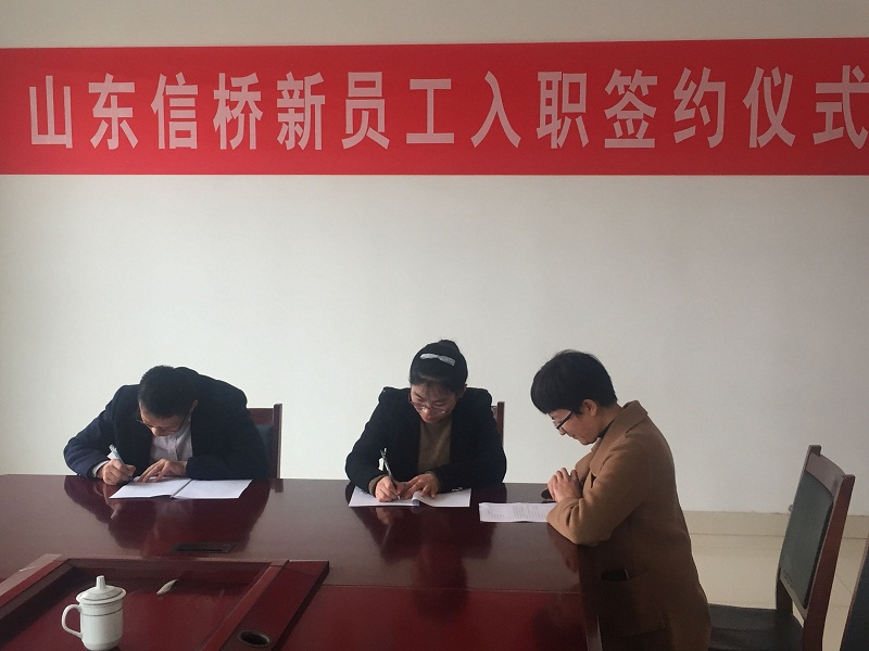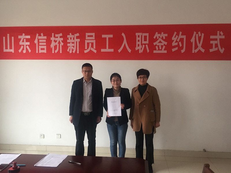 2018年11月30日下午3點,新員工入職簽約儀式在泰安信橋二樓會議室舉行,公司副總石振偉與新員工李佳欣參加,同時公司財務(wù)總監(jiān)張燕與人事人員出席。