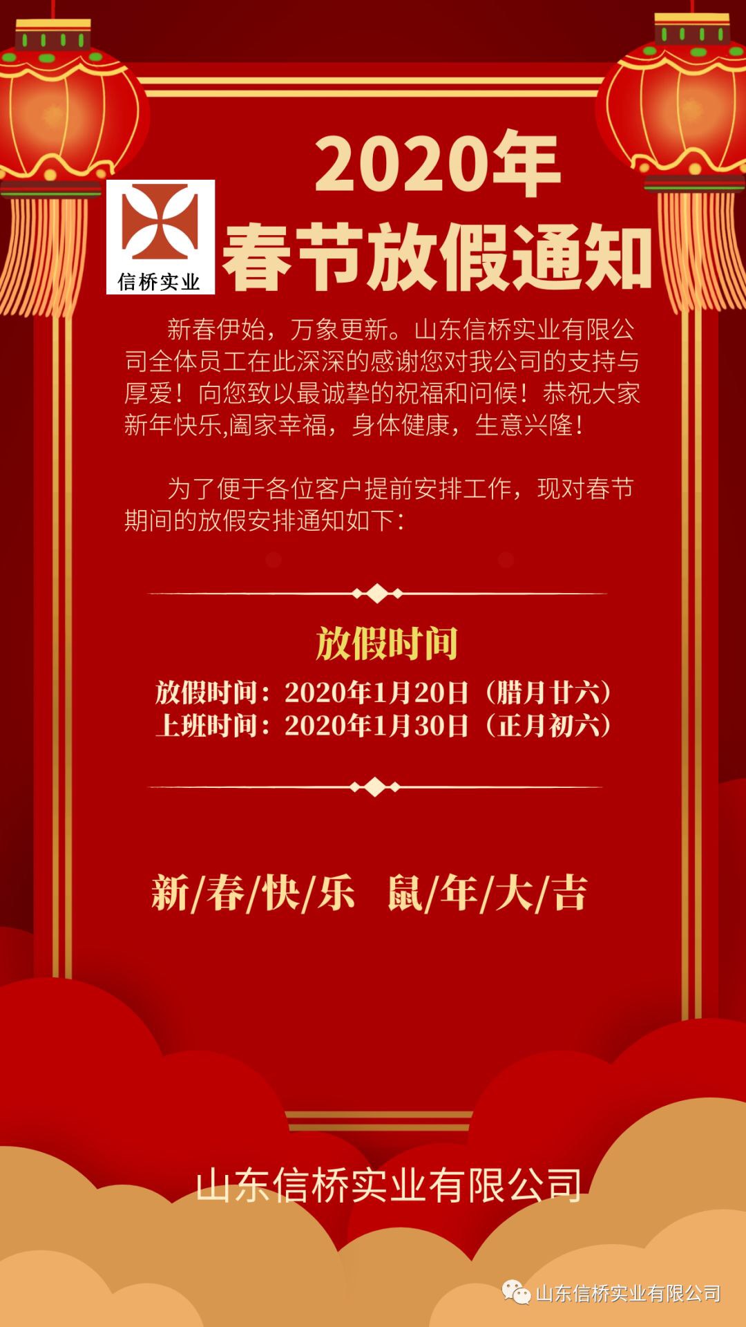 2020年春節(jié)放假通知